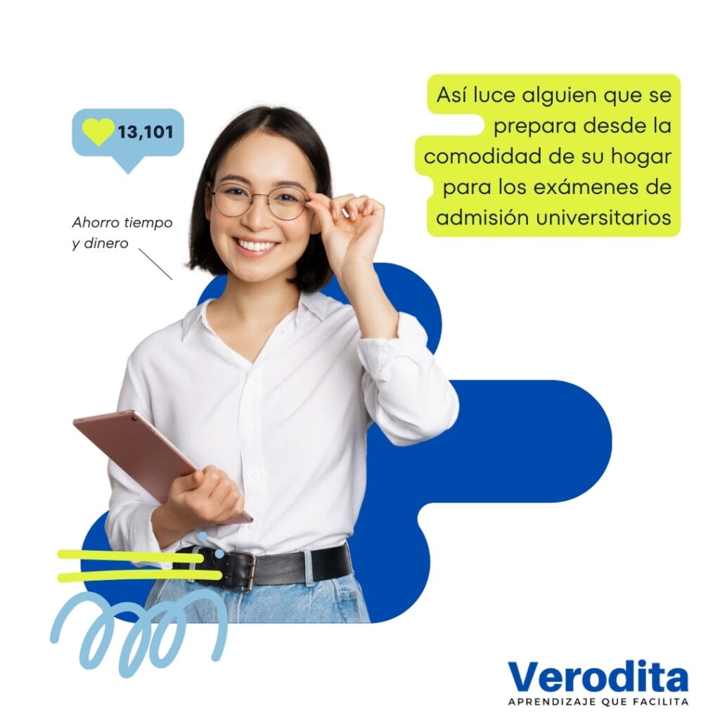 Verodita te ofrece la mejor preparación para los exámenes de admisión universitarios. Nuestra plataforma está diseñada para proporcionarte los recursos educativos y herramientas interactivas necesarias para alcanzar tus metas académicas. Con Verodita, estudiar es más fácil y accesible desde cualquier lugar y en cualquier momento. Prepárate con los mejores materiales y consejos de exalumnos expertos.